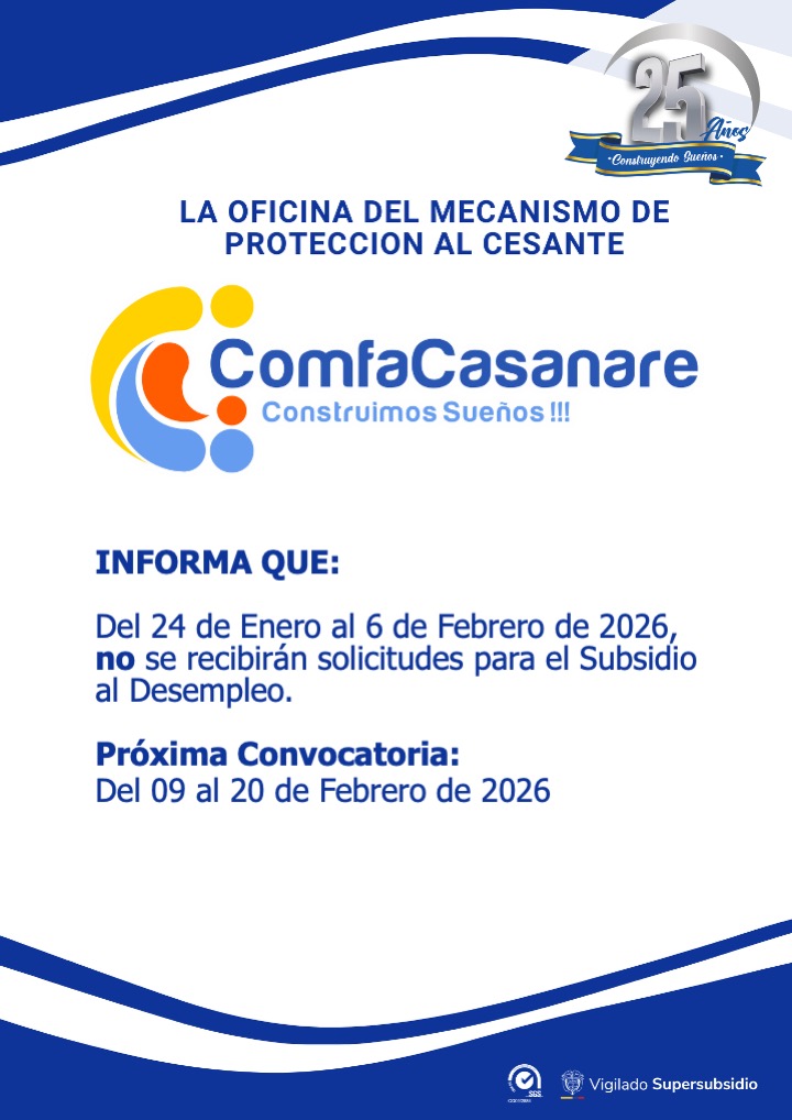 Impulsa tus proyectos con las Líneas de Crédito por Libranza de Comfacasanare. En Comfacasanare trabajamos para brindarte soluciones financieras que se ajusten a tus necesidades y te permitan avanzar con tranquilidad, por eso, podrás disponer de diferentes líneas de crédito por libranza, para ofrecerte respaldo, facilidad de pago y condiciones favorables. A través de las modalidades de Libre Inversión y Compra de Cartera, contaras con la oportunidad de organizar tus finanzas, cumplir metas personales o cubrir imprevistos, con la seguridad y confianza que te ofrece tu Caja de Compensación. Condiciones del crédito Gracias al sistema de descuento por libranza, las cuotas se descuentan directamente de tu nómina, lo que facilita el cumplimiento de tus pagos y te brinda mayor control financiero. Recibe asesoría personalizada: (+57) 3228532670 / (+57) 3216886830. Aplican términos y condiciones.