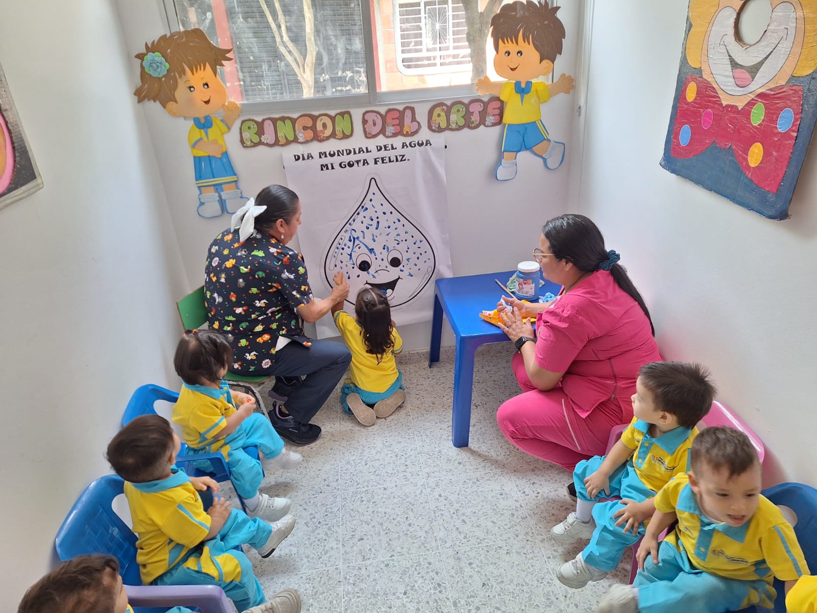 De manera complementaria, a través del juego, la exploración y el aprendizaje significativo, las docentes lideraron en las aulas diversas actividades pedagógicas y lúdicas dirigidas a los niños y niñas, promoviendo desde la primera infancia la valoración, el cuidado y el respeto por el agua, fortaleciendo su conciencia ambiental y su rol como futuros guardianes del planeta.