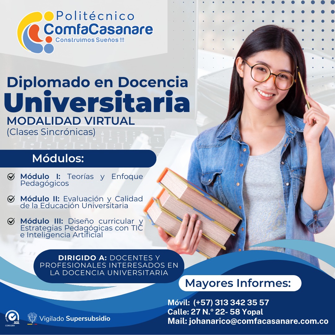 Comfacasanare continúa apostándole a la educación virtual como motor de desarrollo personal y profesional, por ello abre inscripciones para un Diplomado de 120 horas y cursos cortos entre 30 y 40 horas, diseñados para responder a las necesidades actuales del mercado laboral en: