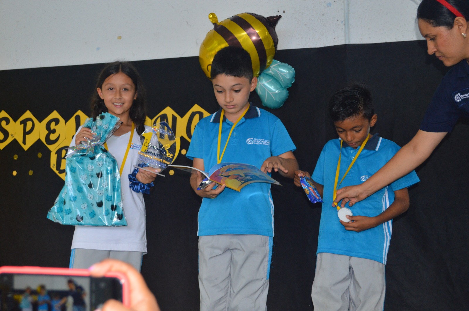 Durante esta jornada, más de 30 niños y niñas demostraron su talento, disciplina y amor por el idioma, tras superar diversas rondas clasificatorias; a través de esta actividad, fortalecieron sus habilidades en pronunciación, vocabulario y escritura, mientras aprendían de una manera lúdica y participativa.