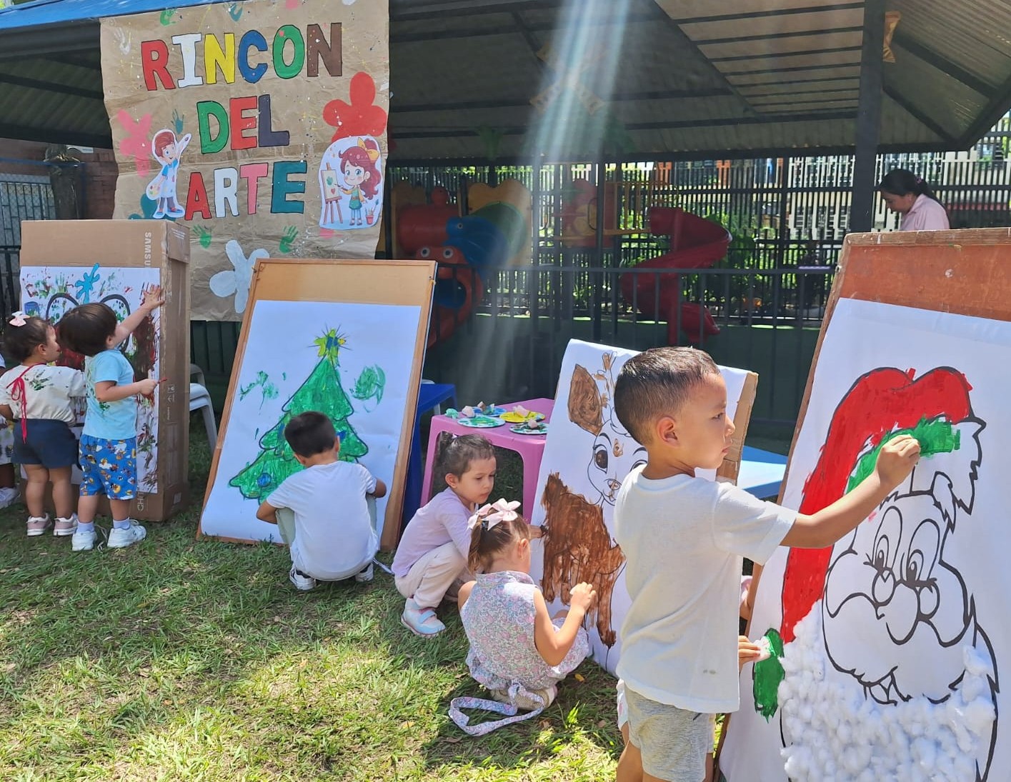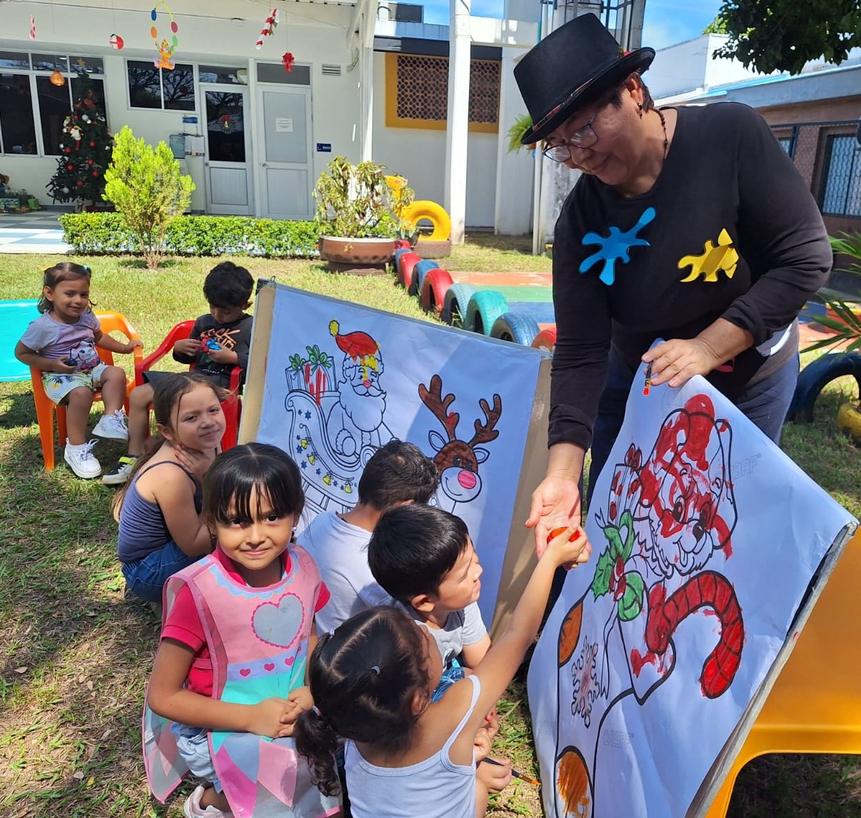 Esta iniciativa estuvo orientada al fortalecimiento de las habilidades creativas y expresivas de los niños y niñas, garantizando prácticas pedagógicas pertinentes que favorecen su desarrollo integral. Como acto de cierre, se realizó una actividad pedagógica al aire libre consistente en una muestra artística de pintura, donde los participantes evidenciaron distintas técnicas pictóricas aprendidas a lo largo del año.